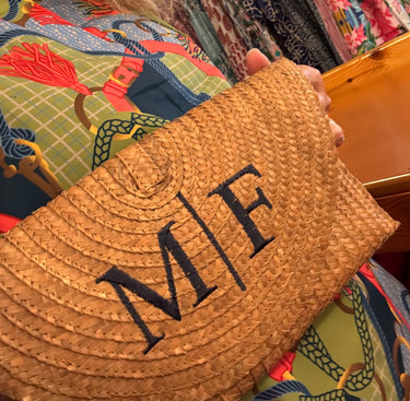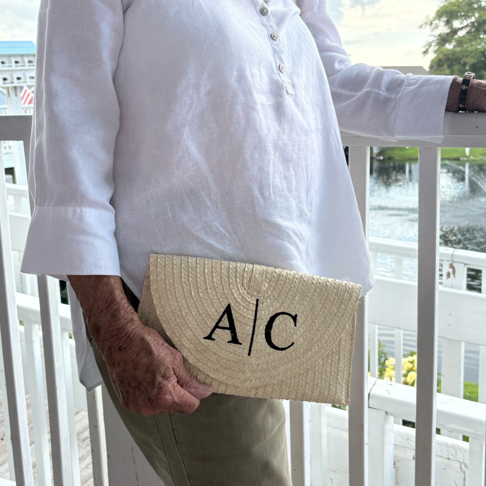 Our handcrafted Bali Clutch features an embroidered monogram that adds a touch of modern elegance to any outfit. Carry all your essentials in this versatile clutch, perfect for any occasion.