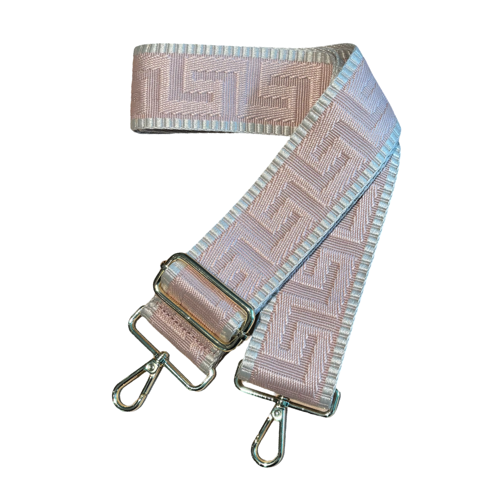 Stunning adjustable 2" woven bag strap with gold hardware. Blush and cream. Pair it with our blush leather Poppy.