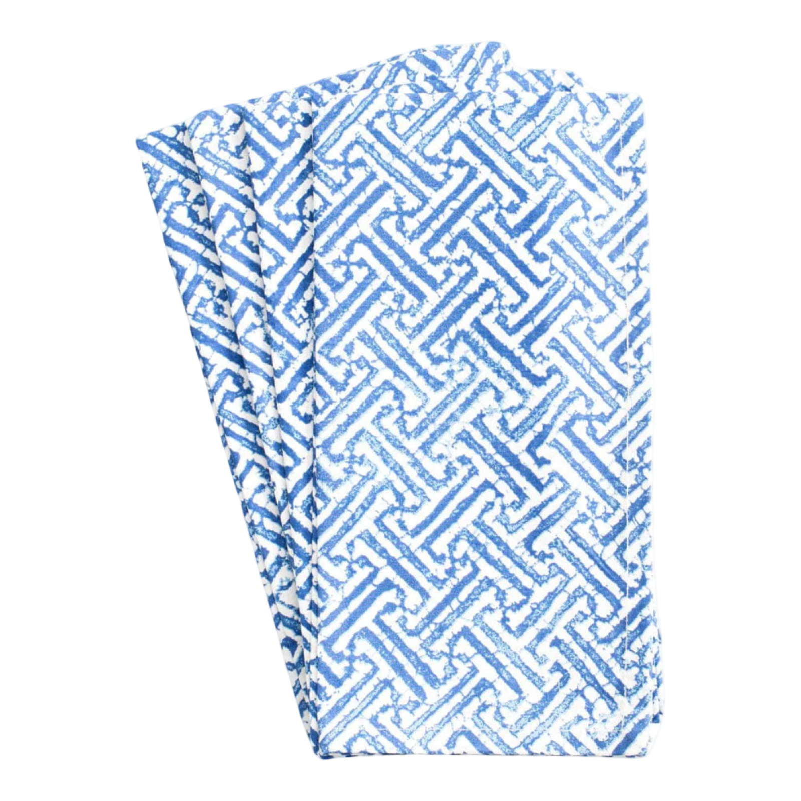 Elevate your table with these rich fretwork cloth napkins. Machine wash cold. Tumble dry low. Handmade in India of 100% cotton. 4 Napkins Included in set. Unfolded napkin measures 19.5" X 19.5".