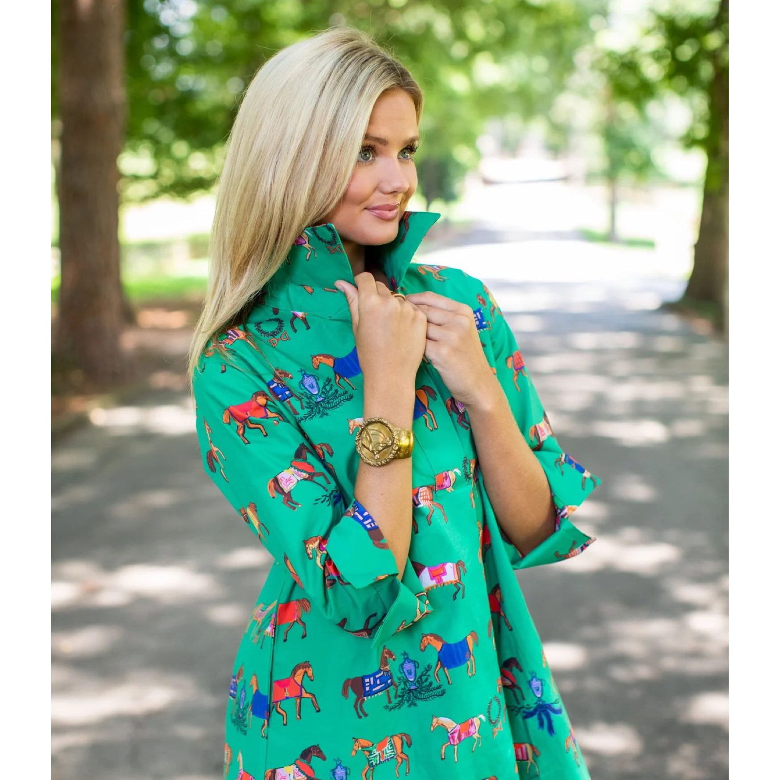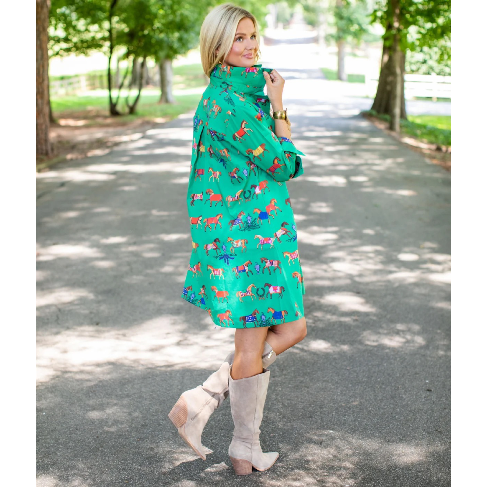 Shirt collar. Side pockets. Inverted pleat down front and back center. High Horse© is an original design by founder and designer, Michelle Bradley Robertson. Printed and handmade in the USA.