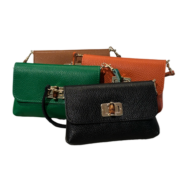 Experience the perfect bag to wear for drinks or a bite to eat. Handcrafted in small batches from supple Italian leather. Includes gold chain. Measures approximately 8” x 5” x 1.3”.