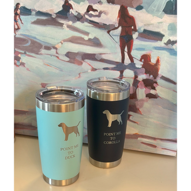 20 oz laser engraved tumbler. Duck is light teal color. Corolla is navy color.